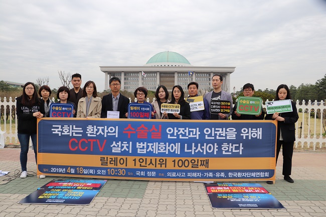 이번 기자회견은 CCTV 법제화 촉구를 요구하는 이들 모임과 단체가 국회 앞 릴레이 1인시위를 100일째 맞아 진행된 것으로, 지난해 부산 소재 한 정형외과에서 벌어진 무자격자 대리수술 사건이 계기가 됐다.