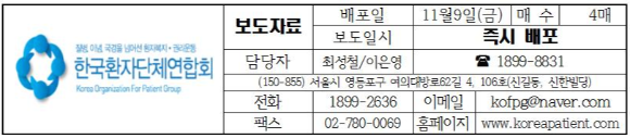 한국환자단체연합회(이하, 환연)는 11월 7일(수) 오전 10시 30분부터 대한의사협회(이하, 의협) 용산 임시회관 7층 회의실에서 약 50분간 진행된 <의료사고 피해자·유족·환자단체 공동 기자회견 관련 대한의사협회 긴급 기자회견>에서 최대집 회장이 발언한 명예훼손적 내용에 대한 법적 검토에 들어갔다.