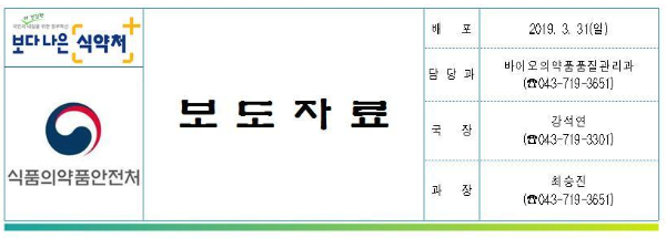 □ 식품의약품안전처(처장 이의경)는 3월 31일 ‘인보사케이주’(유전자치료제)의 주성분 중 1개 성분(2액)이 허가 당시 제출한 자료에 기재된 세포와 다른 세포인 것으로 추정되어 코오롱생명과학에 제조·판매중지를 요청하였습니다.