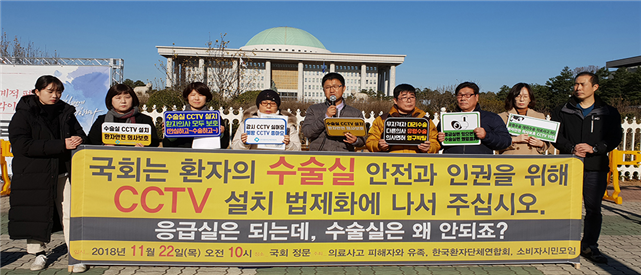 ☞ 2018.11.22. [공동기자회견] 의료사고 피해자·유족·환자·소비자단체는 환자를 죽음으로 내몰고 있는 무자격자 대리수술 근절을 위해 국회가 수술실 CCTV 설치 법제화에 신속히 나설 것을 촉구한다. (의료사고 피해자·유족, 한국환자단체연합회, 소비자시민모임)