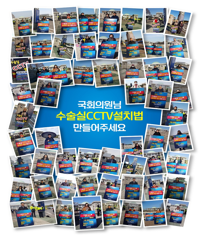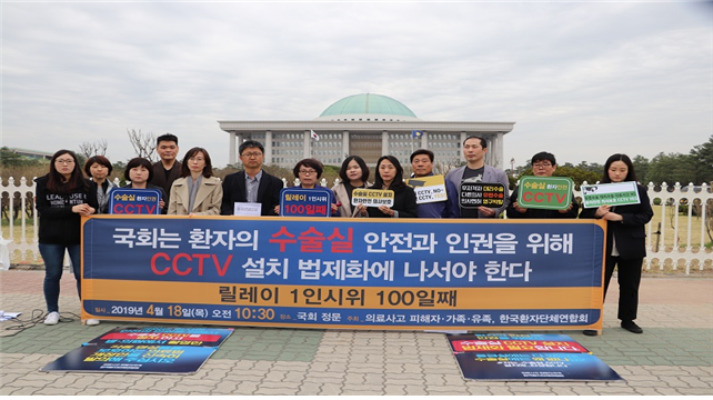의료사고 피해자·가족·유족·환자단체는 2018년 11월 22일부터 2019년 4월 18일까지 100일 동안 국회 정문에서 수술실 CCTV 설치 법제화와 의료기관에서 촬영한 CCTV 영상을 철저하게 관리하고 보호하는 의료법 개정안 발의를 요구하며 릴레이 1인시위를 진행했다. |