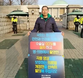 51일차 60번째 릴레이 1인시위 참여자 김점례씨 아들 김인규 51일차 60번째 국회 앞 수술실 CCTV 설치 법제화 촉구 릴레이 1인시위에는 김점례 씨 아들 김인규 씨가 참여했습니다. [환자의목소리] http://www.patientvoice.kr #무자격자대리수술근절 #수술실CCTV설치법제화 더보기 50일차 59번째 릴레이 1인시위 참여자 권대희 군 어머니 이나금 50일차 59번째 국회 앞 수술실 CCTV 설치 법제화 촉구 릴레이 1인시위에는권대희 군 어머니 이나금 씨가 참여했습니다. [환자의목소리] http://www.patientvoice.kr #무자격자대리수술근절 #수술실CCTV설치법제화 더보기 49일차 58번째 릴레이 1인 시위 참여자 이연화 양 아버지 이진기 49일차 58번째 국회 앞 수술실 CCTV 설치 법제화 촉구 릴레이 1인시위에는이연화 양 아버지 이진기 씨가 참여했습니다. [환자의목소리] http://www.patientvoice.kr #무자격자대리수술근절 #수술실CCTV설치법제화 더보기 이전 1 ··· 71 72 73 74 75 76 77 ··· 100 다음